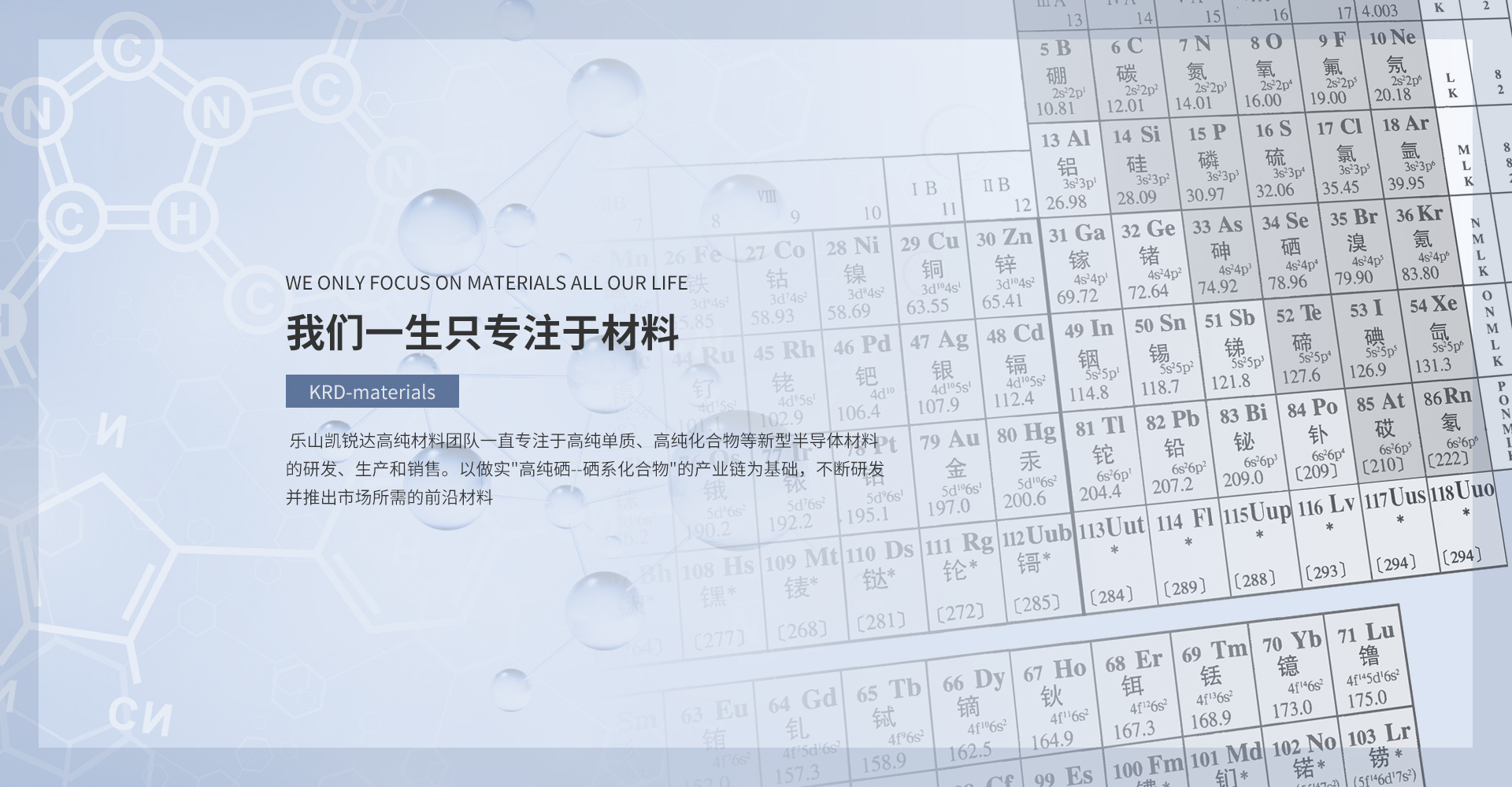 樂(lè)山凱銳達(dá)高純材料團(tuán)隊(duì)一直專(zhuān)注于高純單質(zhì)、高純化合物等新型半導(dǎo)體材料的研發(fā)、生產(chǎn)和銷(xiāo)售。以做實(shí)"高純硒--硒系化合物"的產(chǎn)業(yè)鏈為基礎(chǔ),不斷研發(fā)并推出市場(chǎng)所需的前沿材料。專(zhuān)業(yè)人才與技術(shù)方面的優(yōu)勢(shì),為公司的技術(shù)創(chuàng)新、產(chǎn)品開(kāi)發(fā)和產(chǎn)業(yè)化發(fā)展,打下了堅(jiān)實(shí)的基礎(chǔ)。至今,研制的高純材料多達(dá)300余種,在國(guó)內(nèi)高純領(lǐng)域處于領(lǐng)先地位。